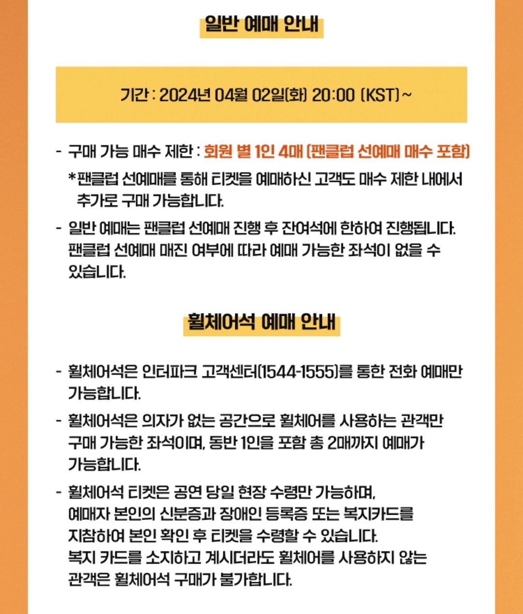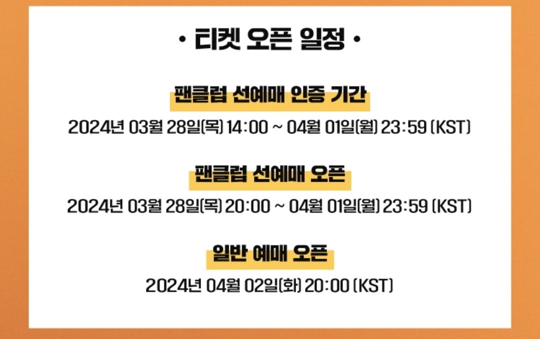 3/28 팬클럽 선예매, 4/2 일반예매 오픈
