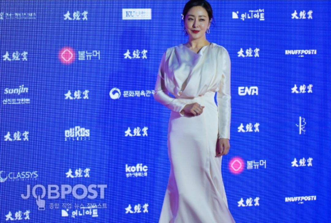 대종상에서 여우주연상을 받은 염정아씨는 스킨색 드레스를 입으셨네요.