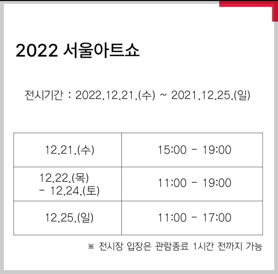 2022서울아트쇼 일정 관람시간 안내