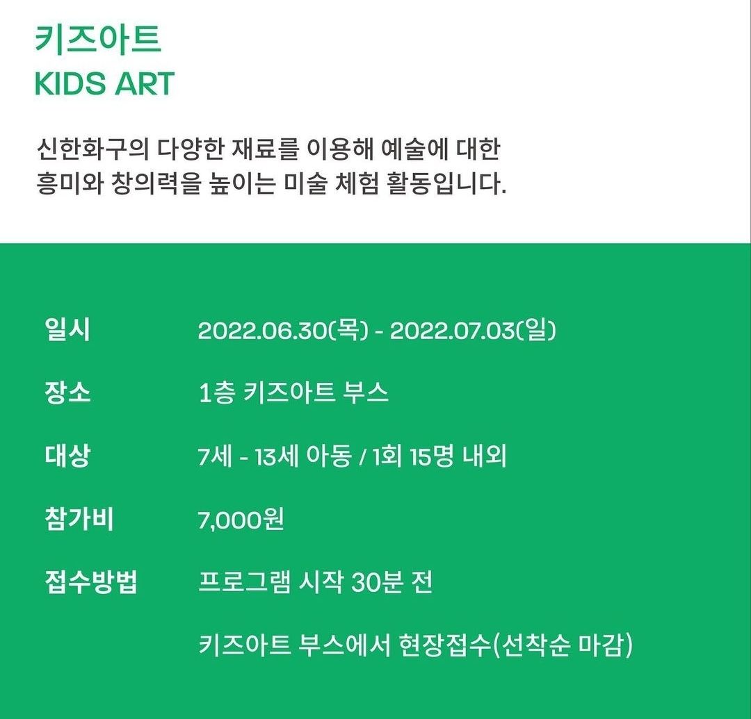 7월1일 오후 12시 30분, 4시 두 차례 사전 예약을 통해 아트페어 대표작품들을 어린이의 시선에서 알려주는 키즈 도슨트를 진행합니다.