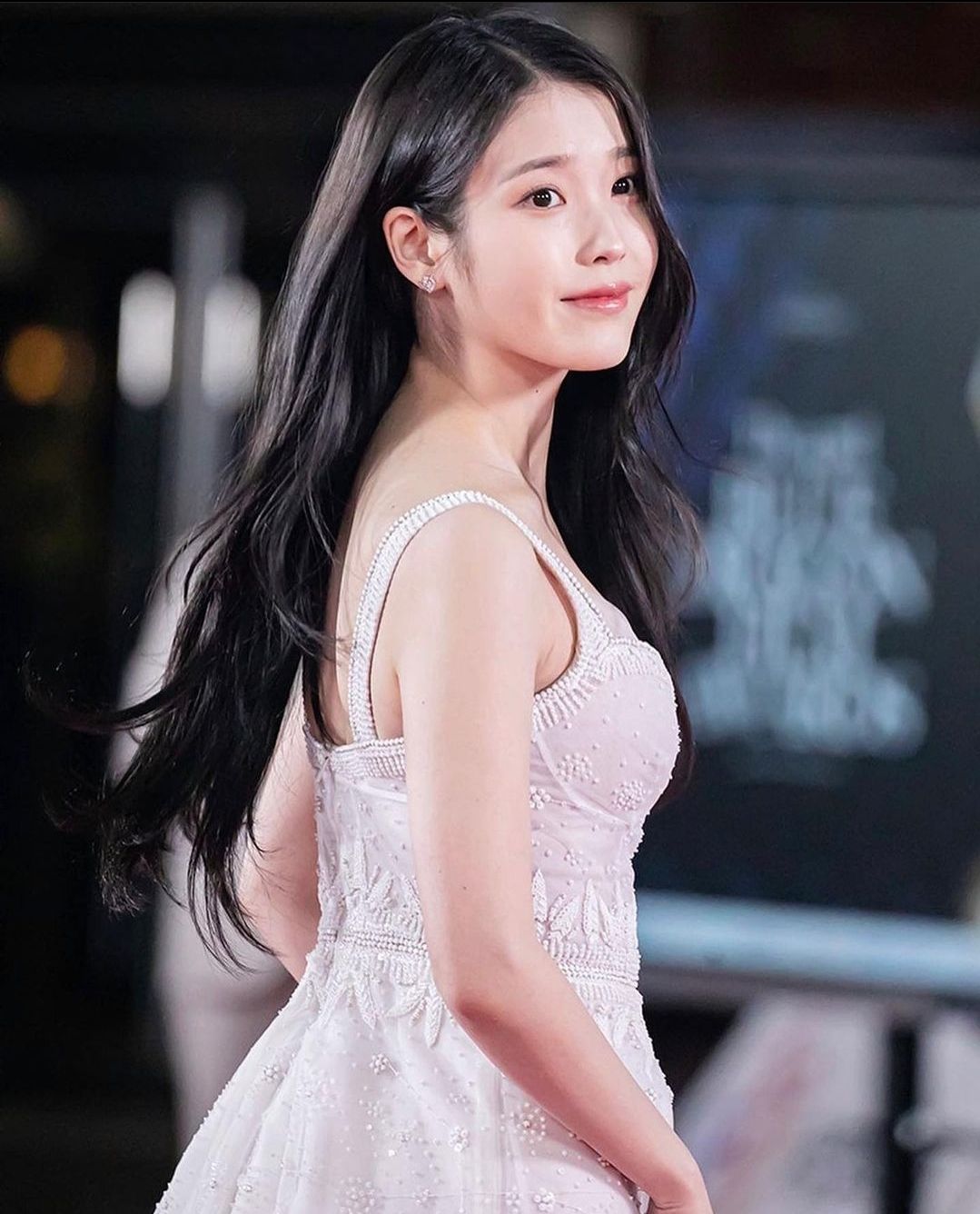아이유는 작은 귀걸이말고는 악세사리를 전혀 하지 않았는데, 긴머리와 드레스로만으로도 주목을 받기 충분했어요.