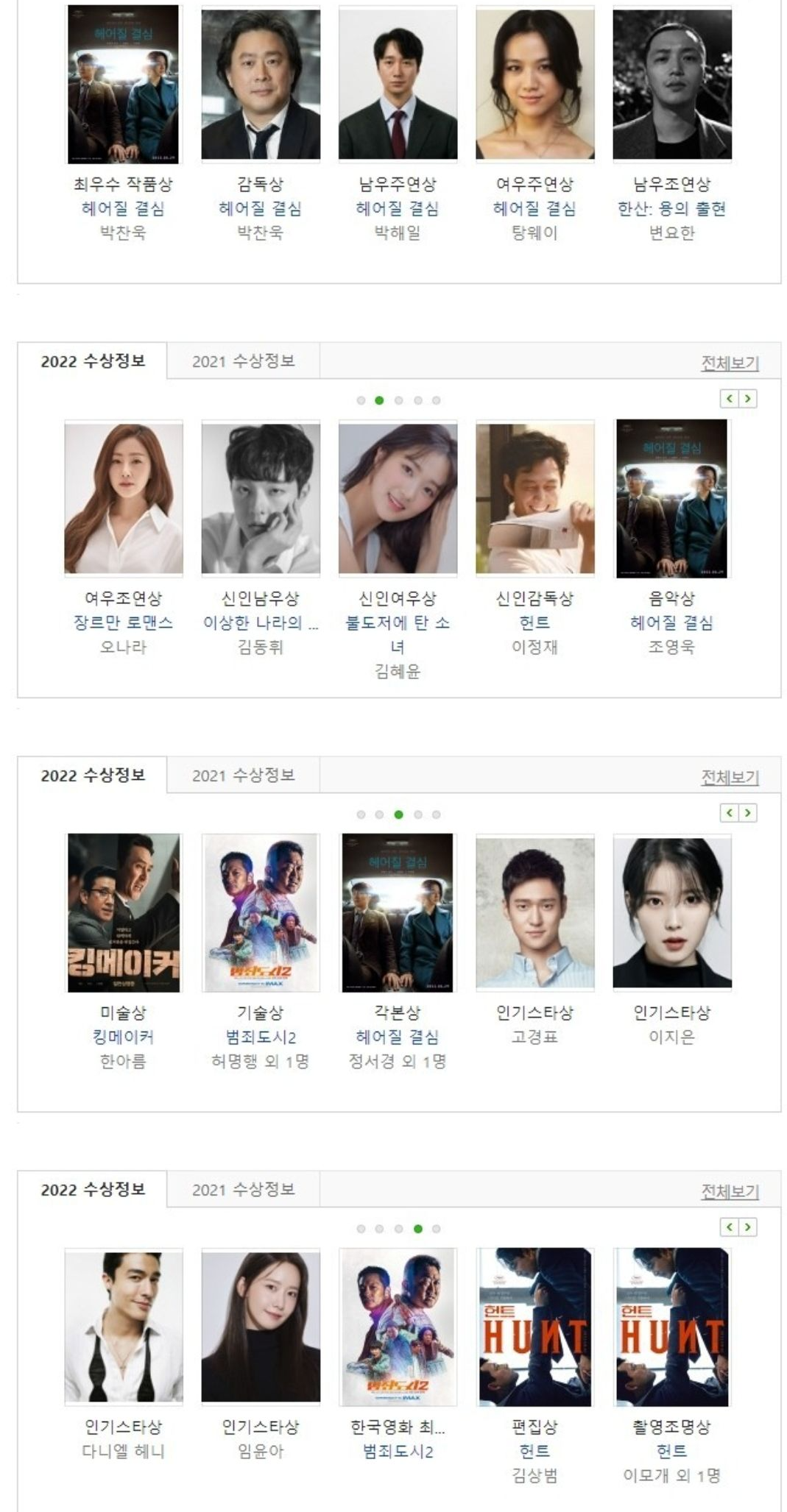 2022 청룡영화제 수상자명단 수상정보