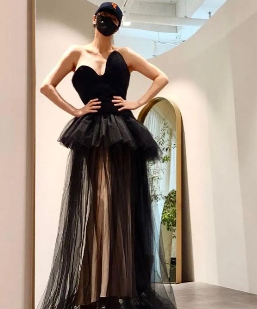 브랜드는 뉴화이트 브라이덜이며, 박소담은 이번 43회 청룡영화제에서 스킨색과 블랙 튤이 섞인 드레스를 입었네요.