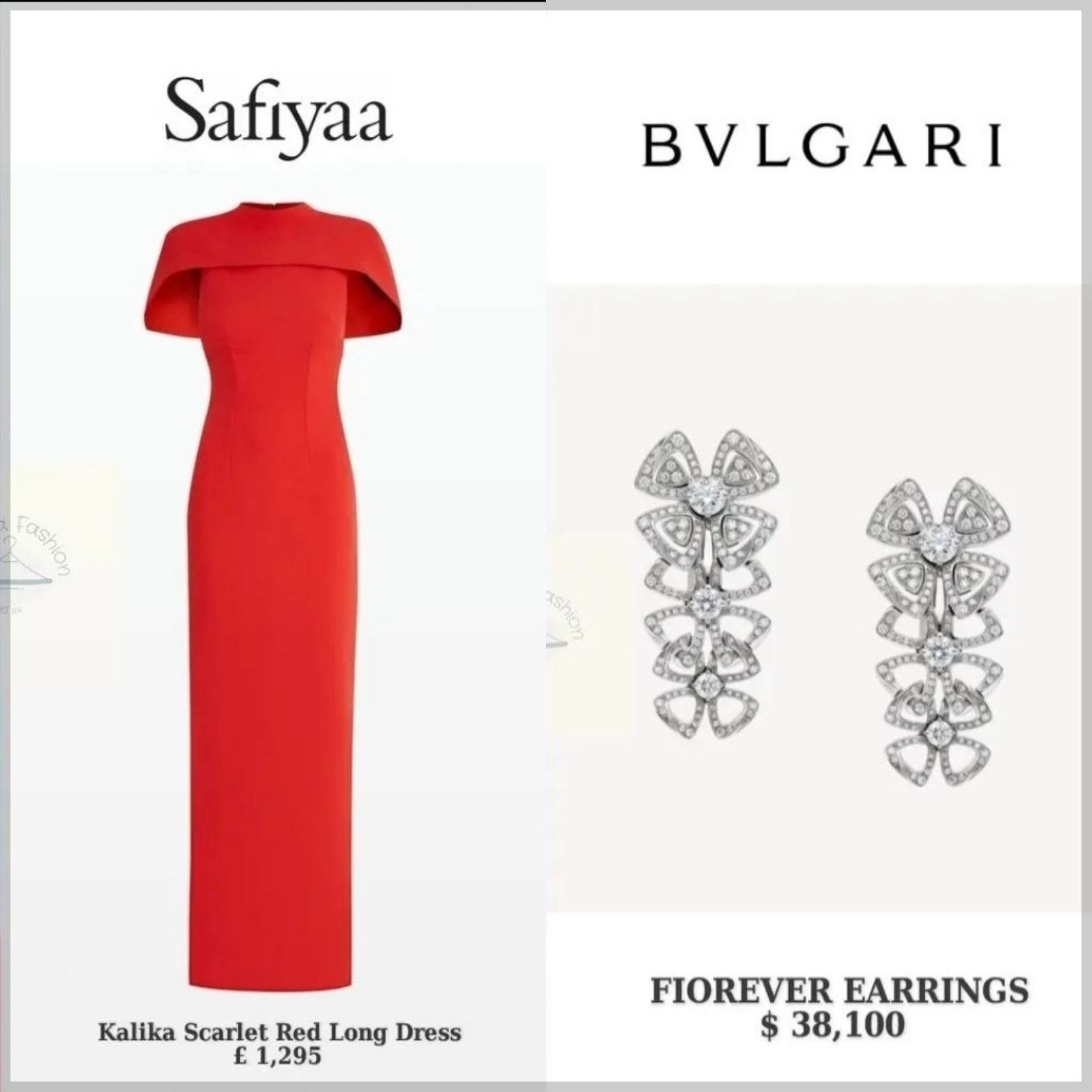 브랜드는 Safiyaa 이며, 그녀의 큼직한 이어링은 불가리 제품입니다.