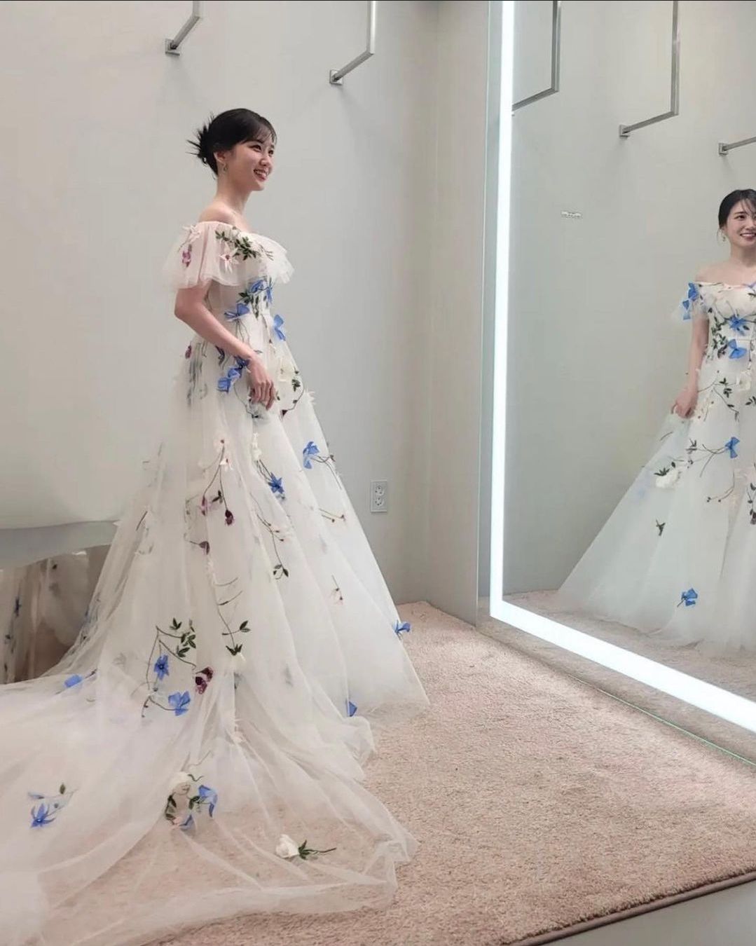 그녀가 착용한 드레스는 수입샵 케일라베넷의 '뉴화이트'라는 브랜드입니다.