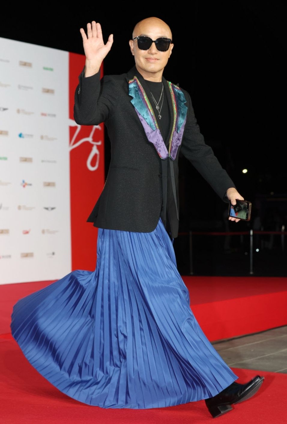 마치 공작새를 연상시키는 홍석천의 레드카펫의상.