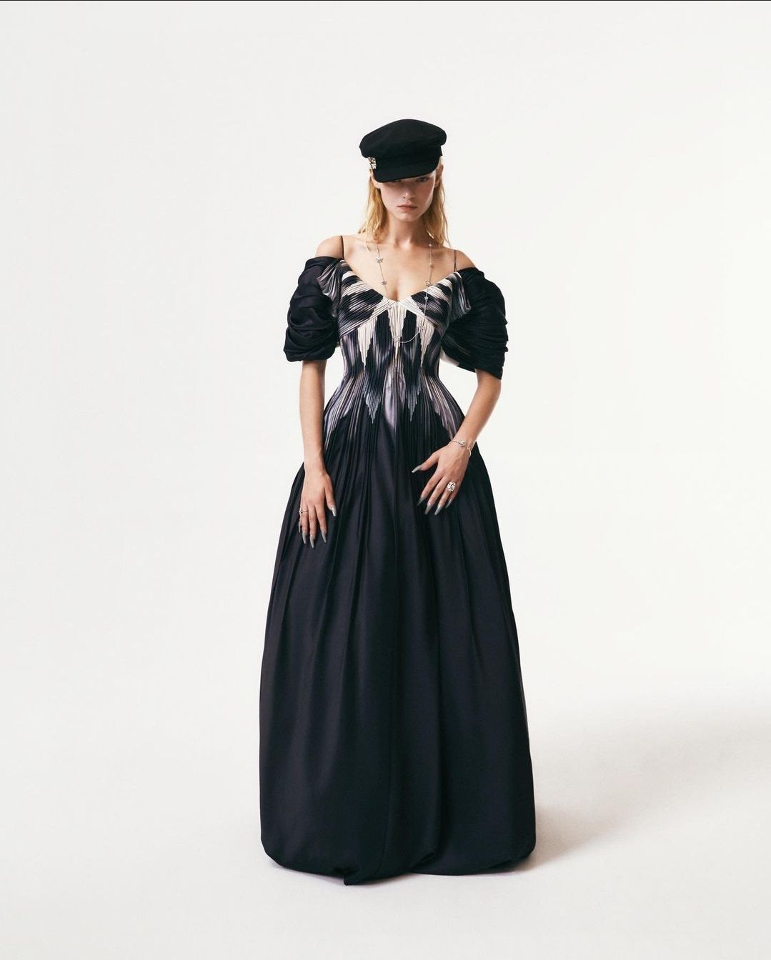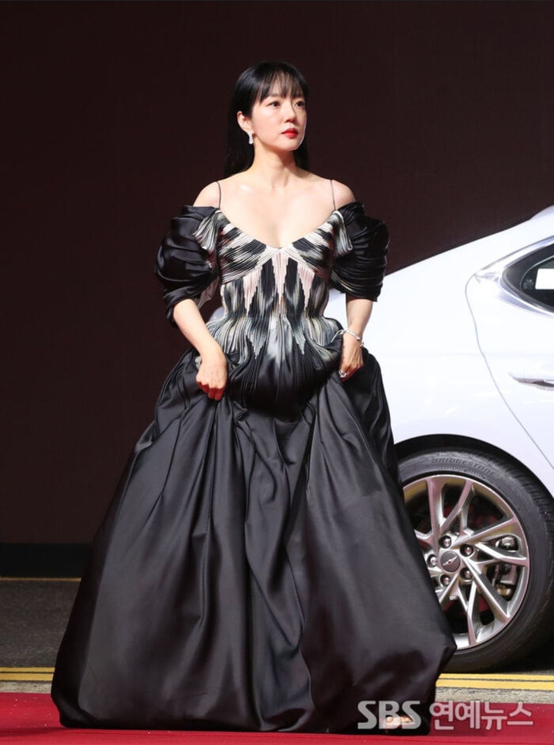 노방같은 드레스재질의 광택감이 화려해 인상적이었고 그녀의 하얀 피부와 잘 어울렸어요.