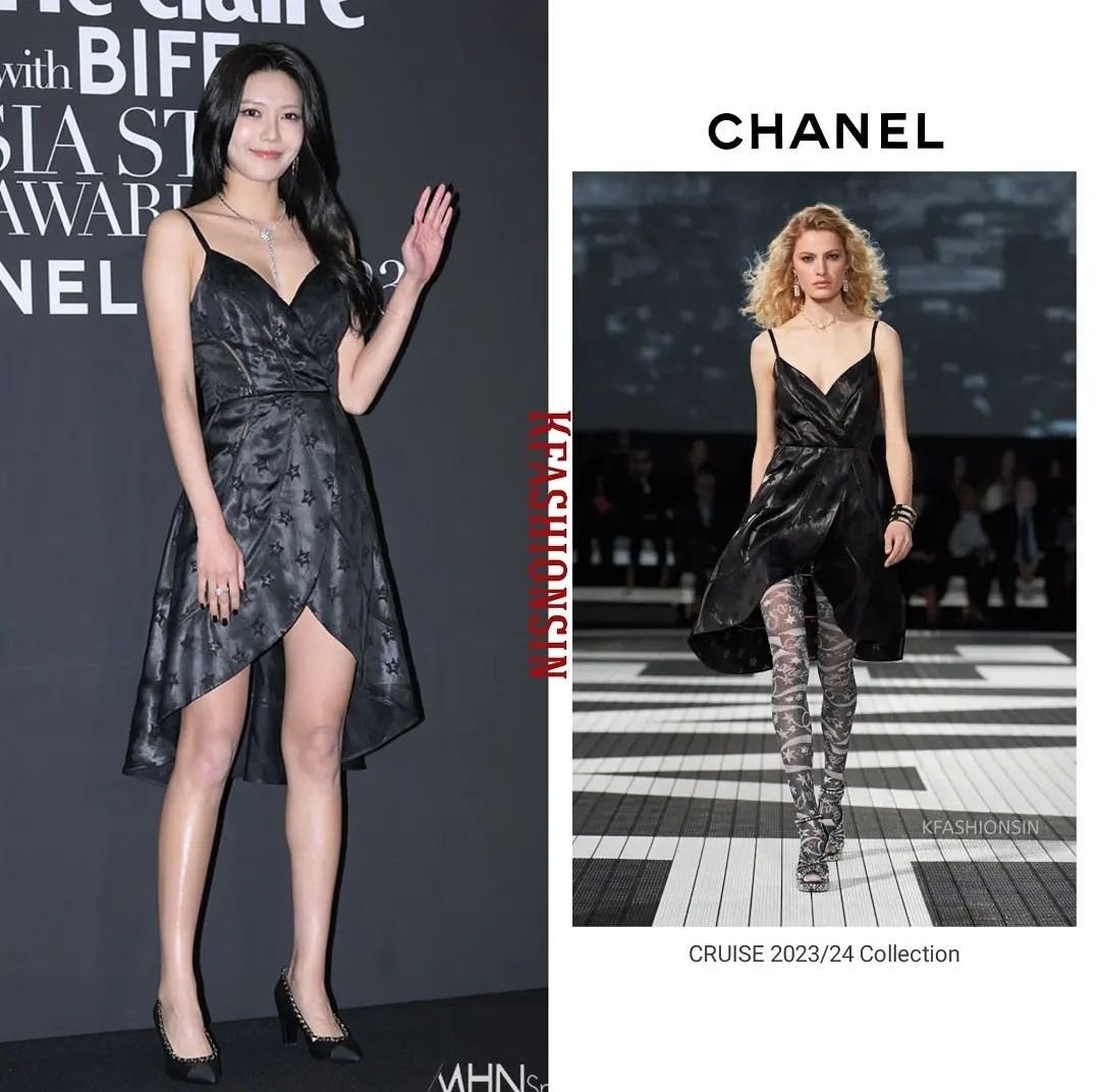 마리끌레르 아시아 스타어워즈의 단독 사회를 맡은 최수영배우는 샤넬의 짧은 미니드레스를 선택했어요.