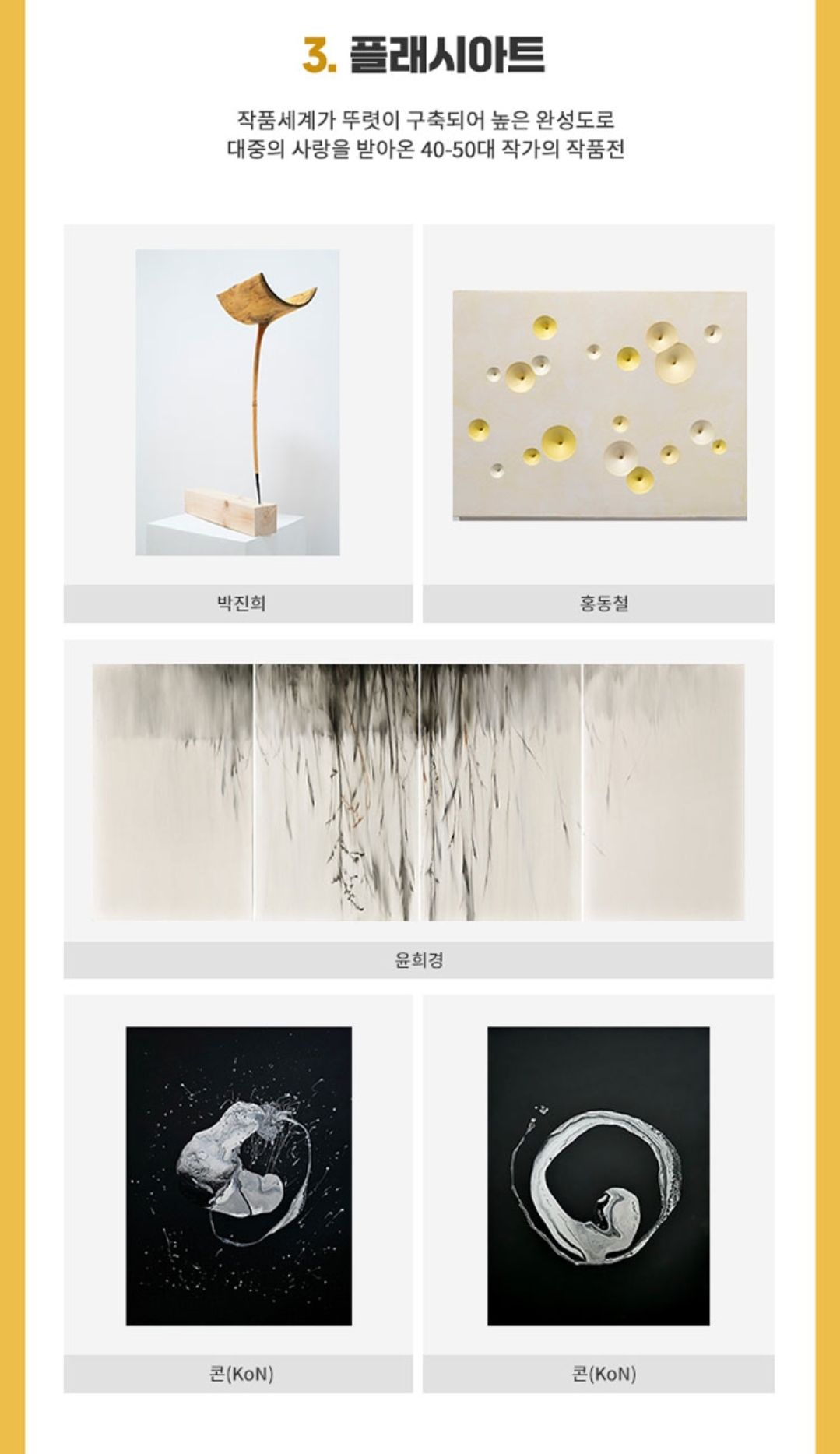 이번 2023 서울 아트쇼에서는 작품세계가 뚜렷이 구축되어 높은 완성도로 대중의 사랑을 받아온 40~50대 작가의 작품전인 '플래시 아트'와,