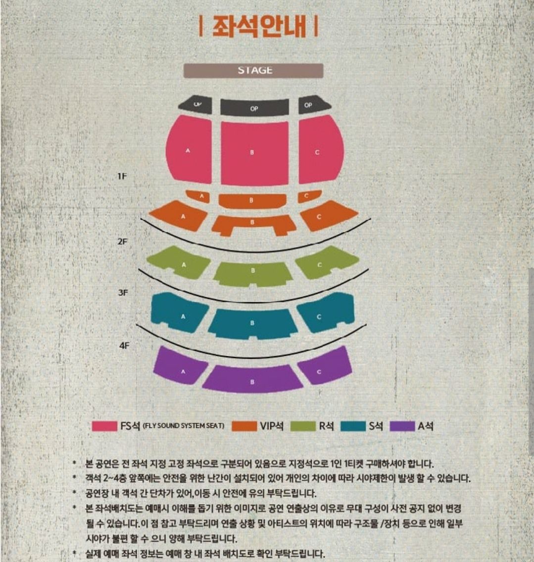 특히 저희가 예매한 좌석은 VIP석보다 높은 금액의 FS석(플라잉 사운드 시스템 시트)석이었고, 무대에서 6번째 열이었습니다.