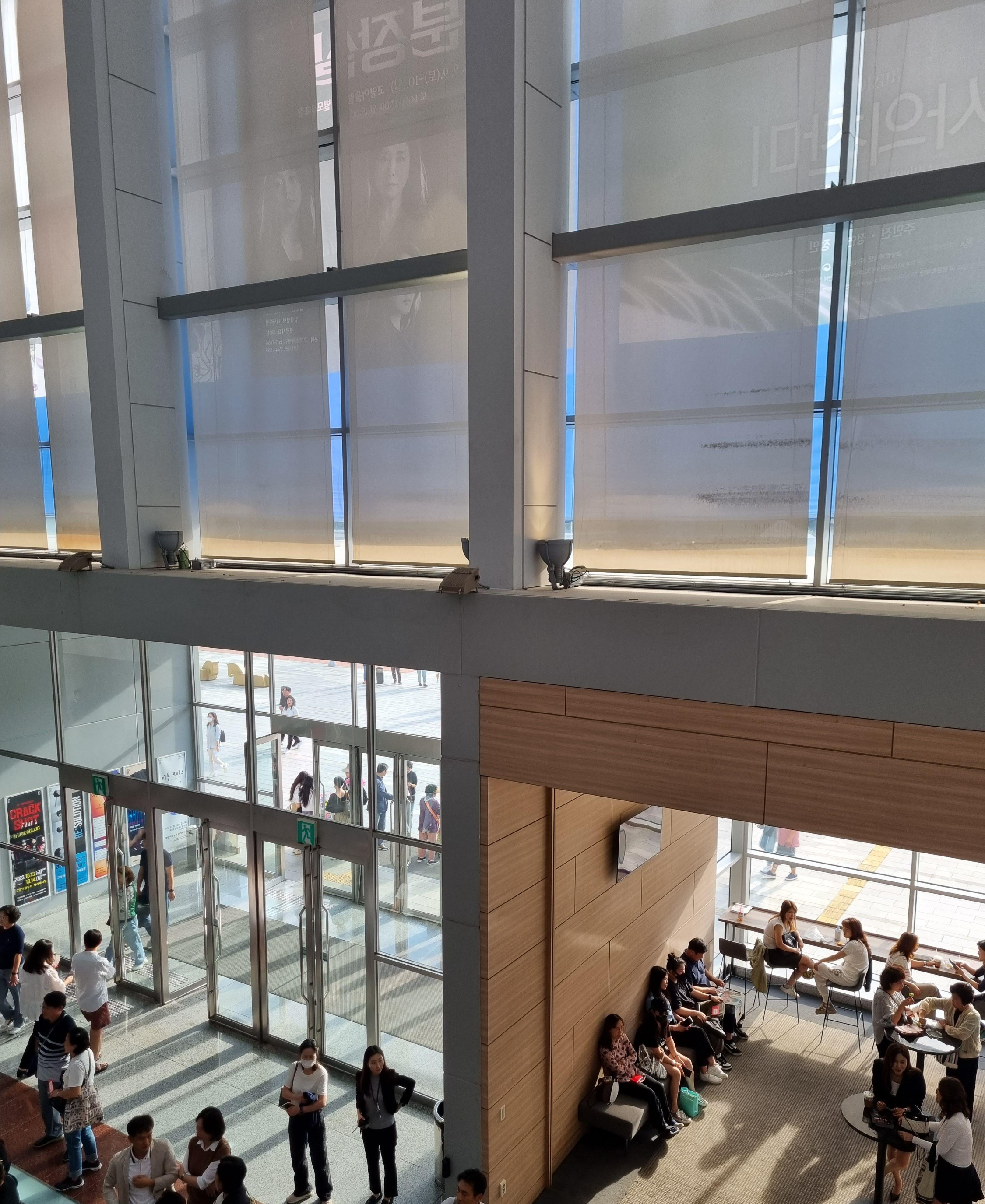 뒤로 갈수록 단차가 커져서 1층의 뒤쪽에 앉아도 앞사람 머리에 가려서 못보는 불상사는 거의 없을 것 같아요.