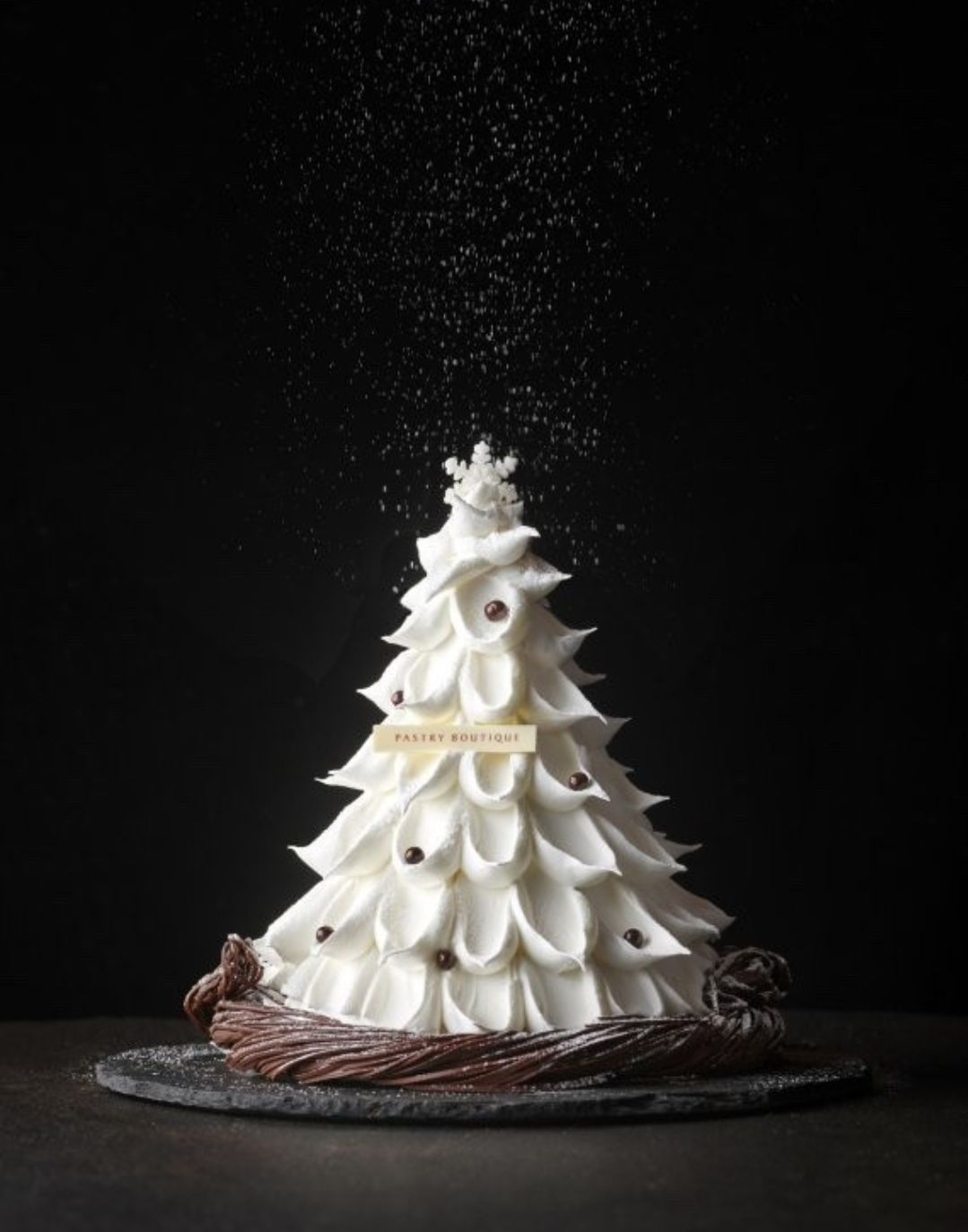 콘래드호텔의 트리모양 케이크로 유명한, 초콜릿 코팅 안에 달콤한 바닐라 크림이 들어간 시그니처 트리 케이크 입니다.