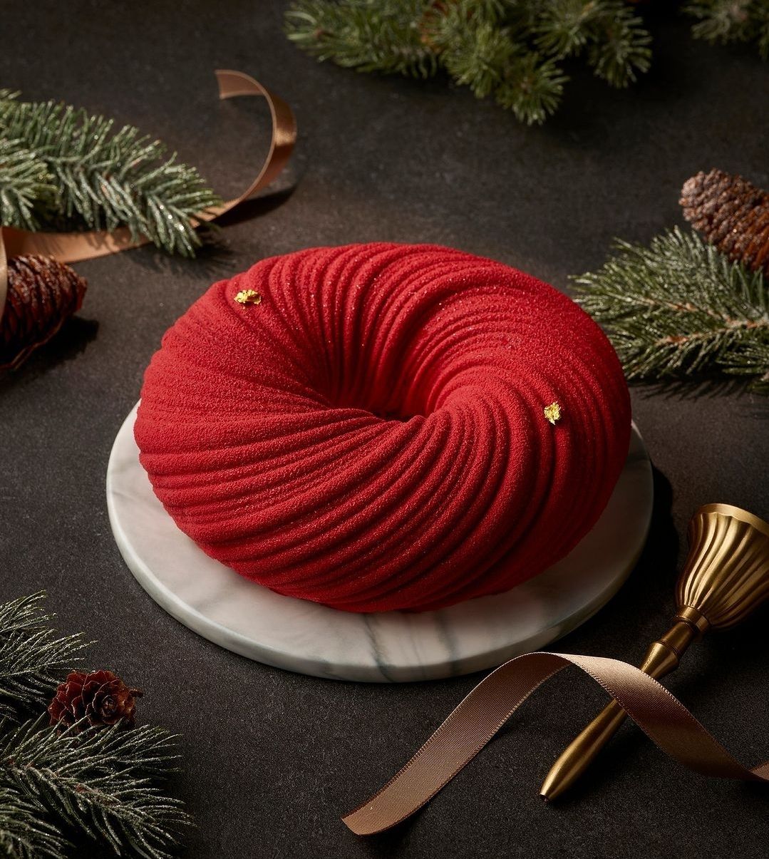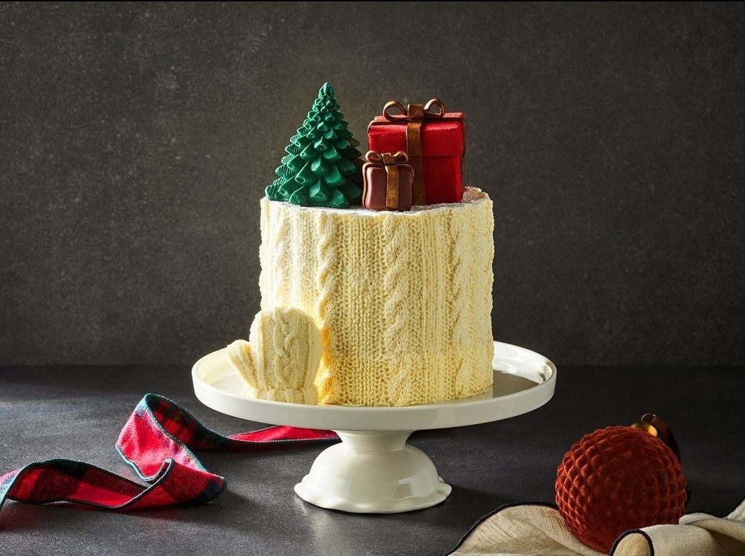 빨간 털실처럼 포근하게 생긴 크리스마스 리스 케이크는 달콤한 베리 콤포트와 무화과 크림으로 향긋한 맛을 냈다고 합니다.