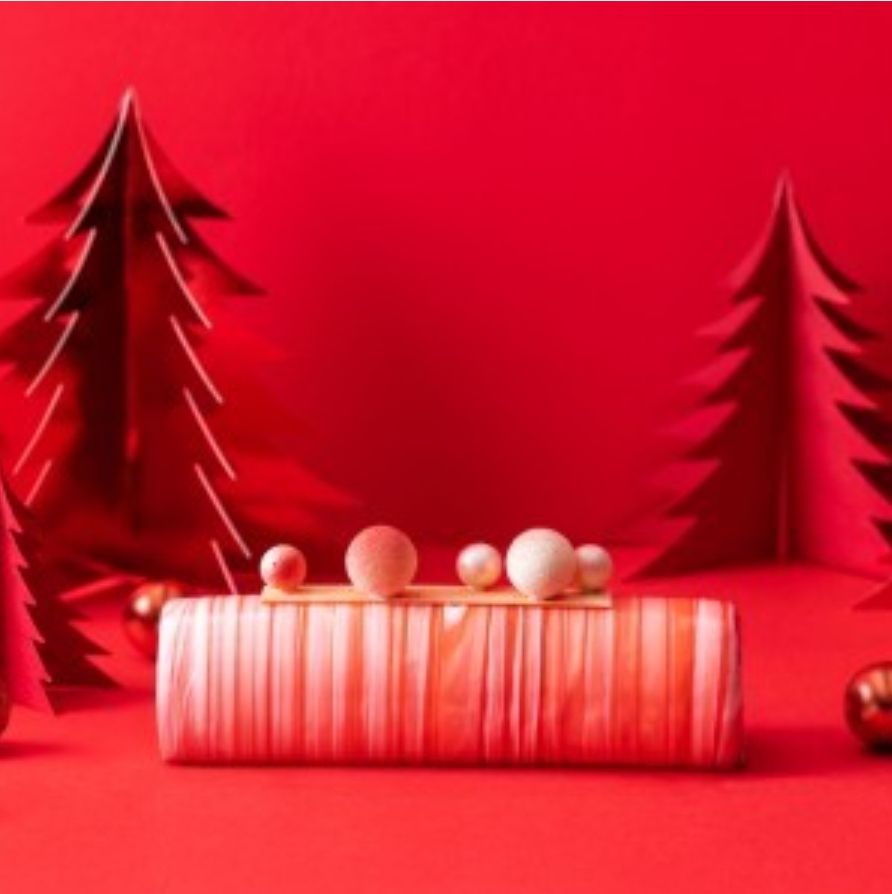 프랑스의 정통 크리스마스 케이크로, 부드러운 비스퀴 쇼콜라와 라즈베리, 발로나 초콜릿을 활용하여 묵직하면서 고급스러운 맛의 롤케이크입니다.