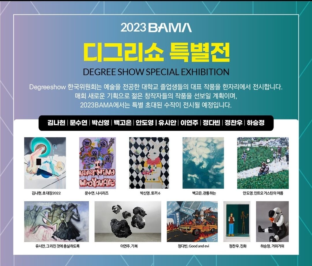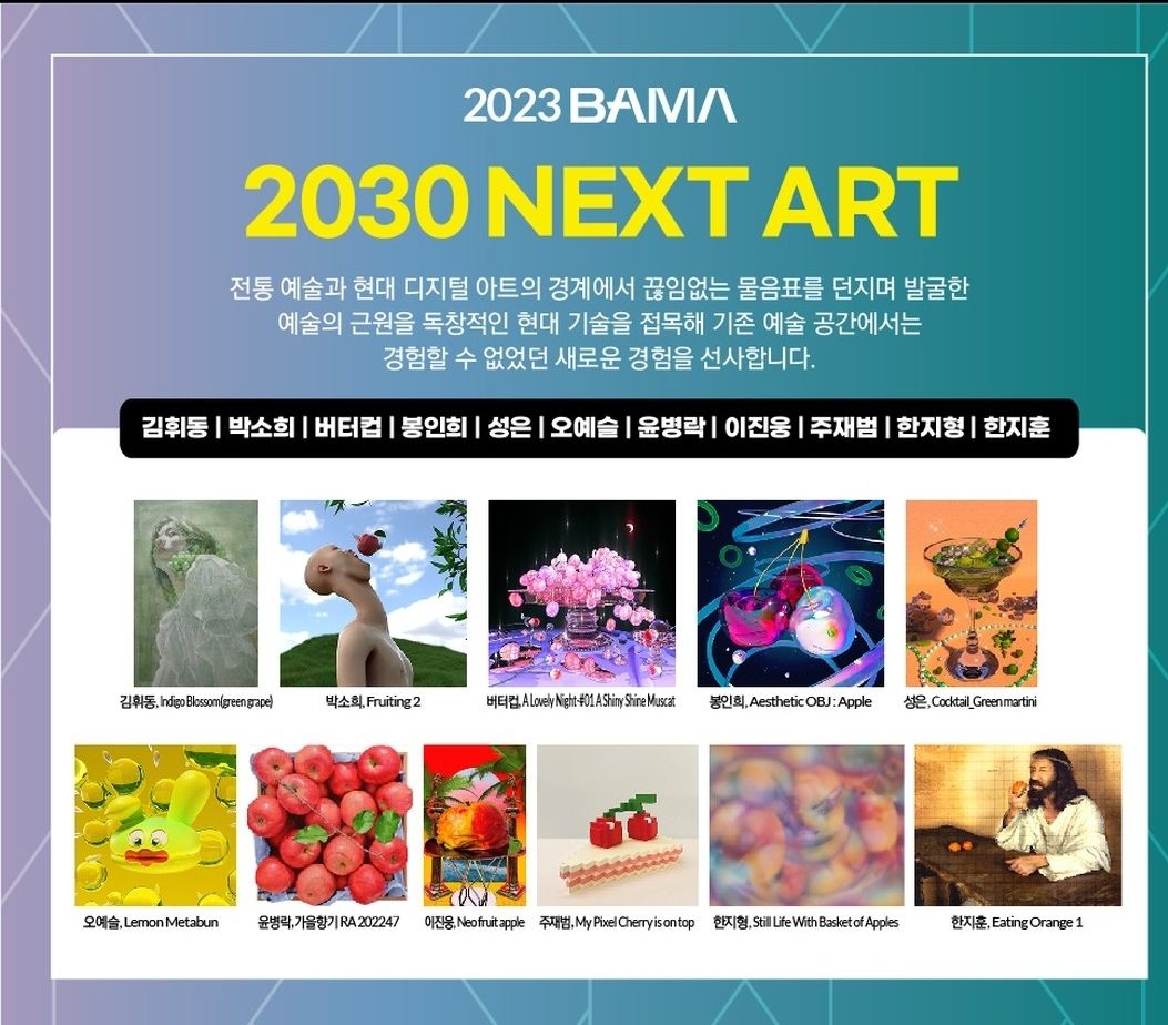 2023 BAMA에 특별히 초대된 청년 예술가들의 젊은 감각을 느껴볼 수 있는 전시가 될 것 같습니다.