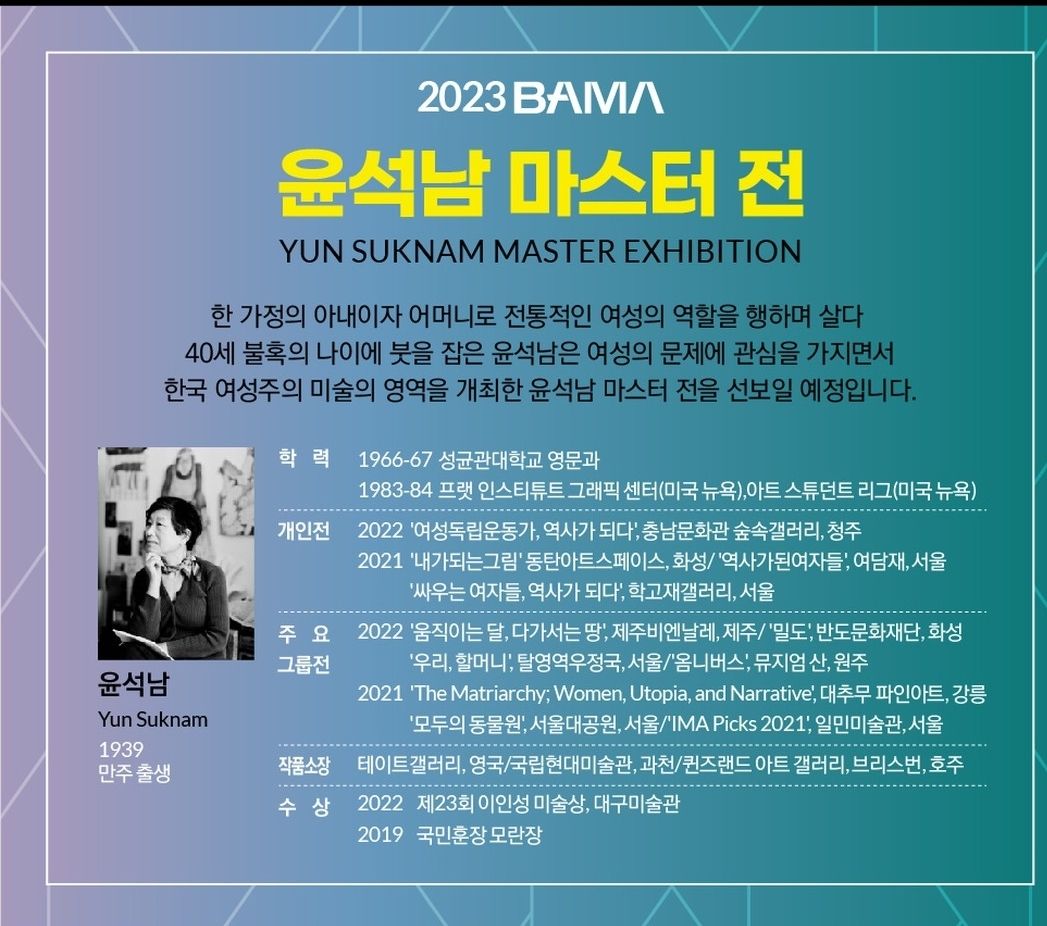이번 2023 제 12회 BAMA에서는 세가지의 특별전이 마련되는데요, 그 첫번째는 <윤석남 마스터 전>입니다.