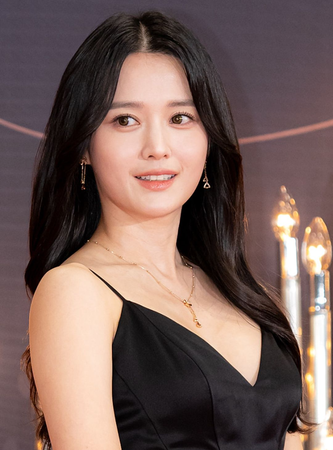 조이현은 반짝이는 펄소재로 된 블랙드레스를 입었는데