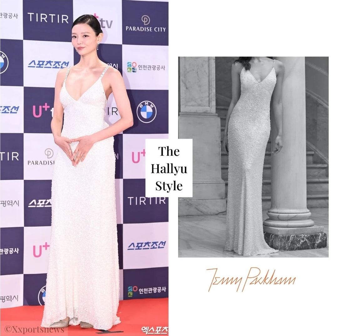 몸매라인을 과감히 드러낸 이솜의 드레스는 한효주가 착용한 같은 브랜드인 제니팩햄입니다.