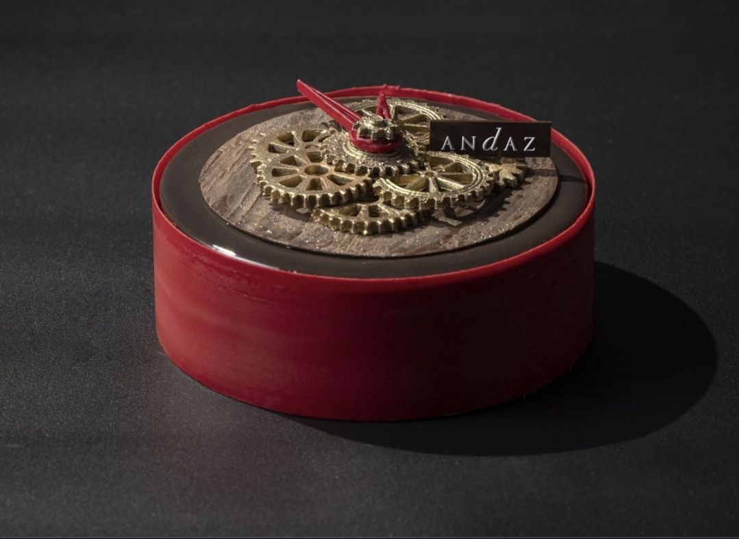 시계 태엽을 형상화한 안다즈 강남의 연말 케이크는 12월 30일부터 31일까지 구입 가능하고