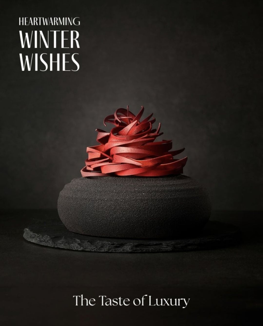 레드벨벳 케이크와 마스카포네 초콜릿 크림, 가벼운 우유 무스로 구성된 눈꽃 케이크.