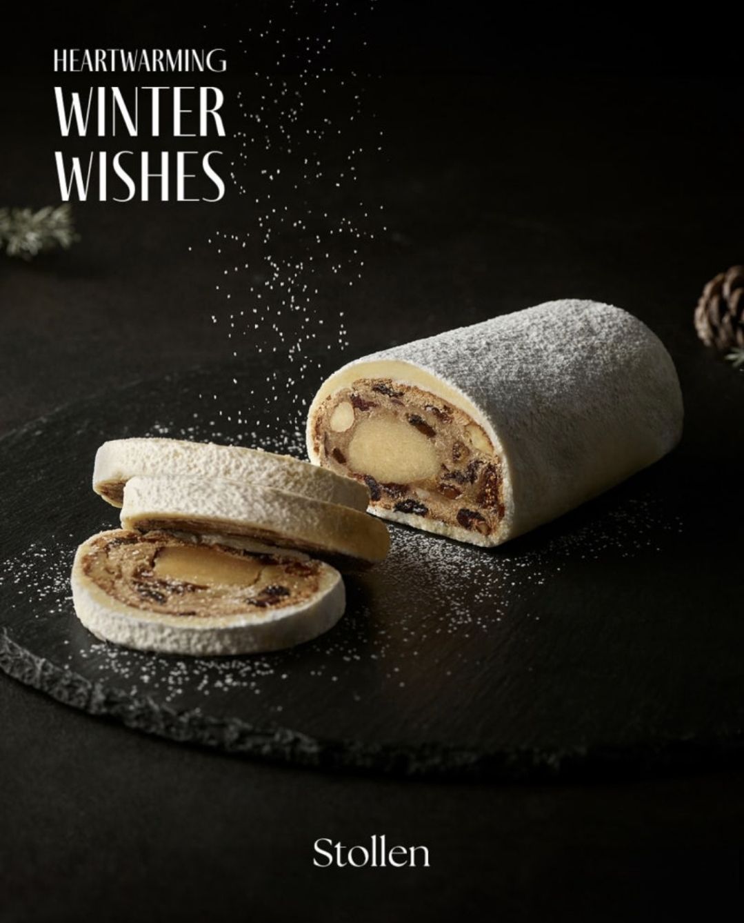 레스큐어 버터와 아몬드 페이스트가 함유되어 고소하고 진한 풍미의 슈톨렌.