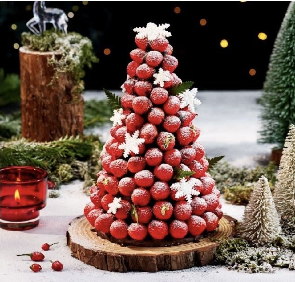 산타의 모자를 형상화한 케이크로 부드러운 바닐라 럼 케이크와 아몬드의 고소함, 상큼한 라즈베리 필링이 하모니를 이룬다고 합니다.