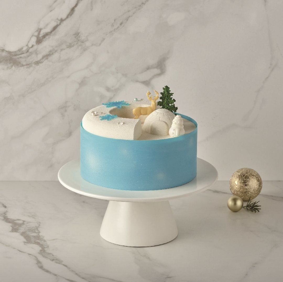 눈 내리는 언덕과 나무, 사슴, 이글루를 표현한 뉴욕 치즈 케이크, 가격은 9만8천원