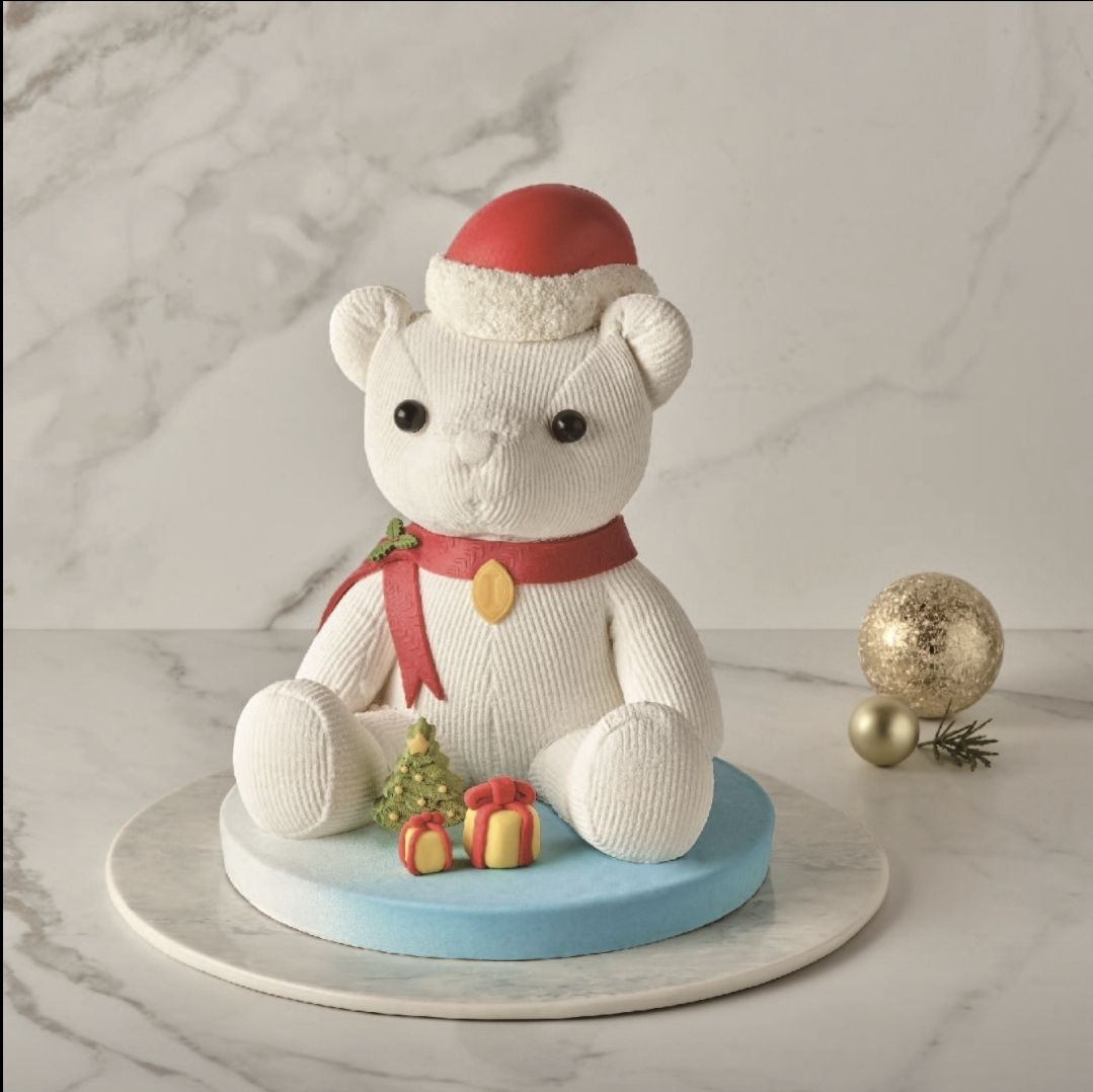 사랑스러운 신라 베어의 모양으로 완성된 더 신라 베어즈 위스퍼 케이크는 발로나 초콜릿 무스로 감싸진 초콜릿 케이크입니다.