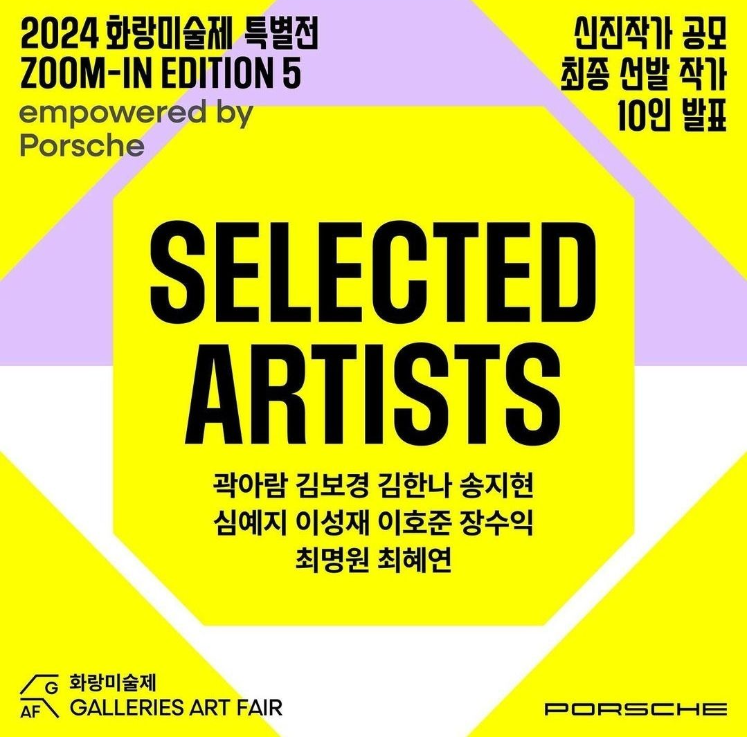 ZOOM-IN Edition 5는 회화, 조각, 설치 등 다양한 장르에서 활동하는 만 39세 이하의 신진작가를 대상으로 한 화랑미술제의 작가 발굴 프로그램인데요,