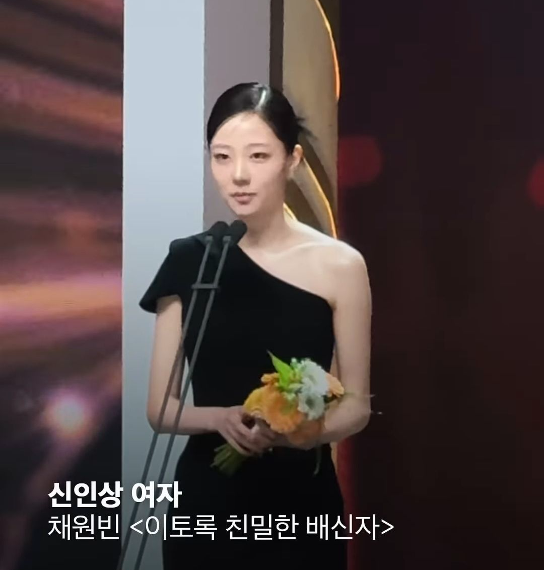 개인적으로 '이토록 친밀한 배신자' 에서 인상적인 연기를 보여줬던 채원빈배우가 신인상을 수상해서 기뻤습니다.