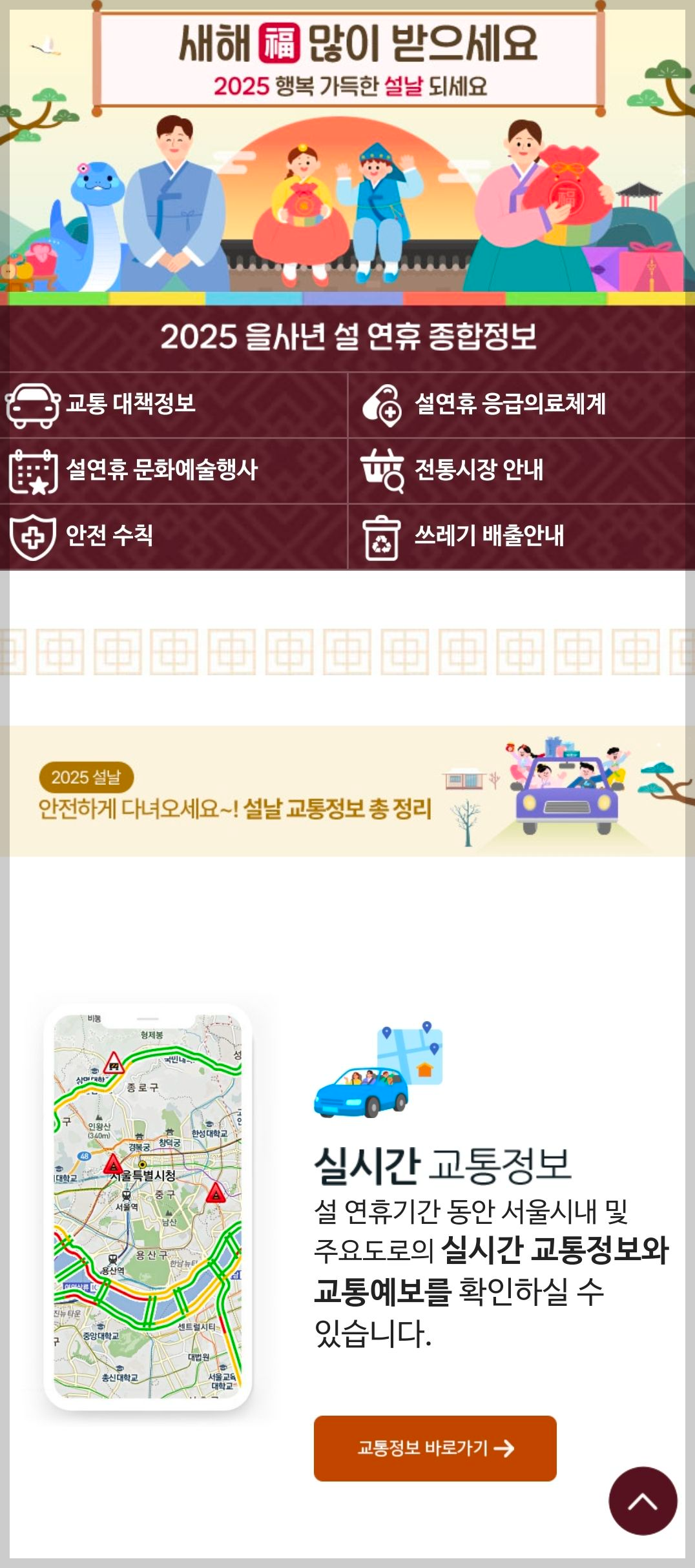 누리집에서는 설연휴 교통정보와 응급의료정보, 행사, 안전수칙, 쓰레기배출 정보까지 알 수 있으니 참고하세요.