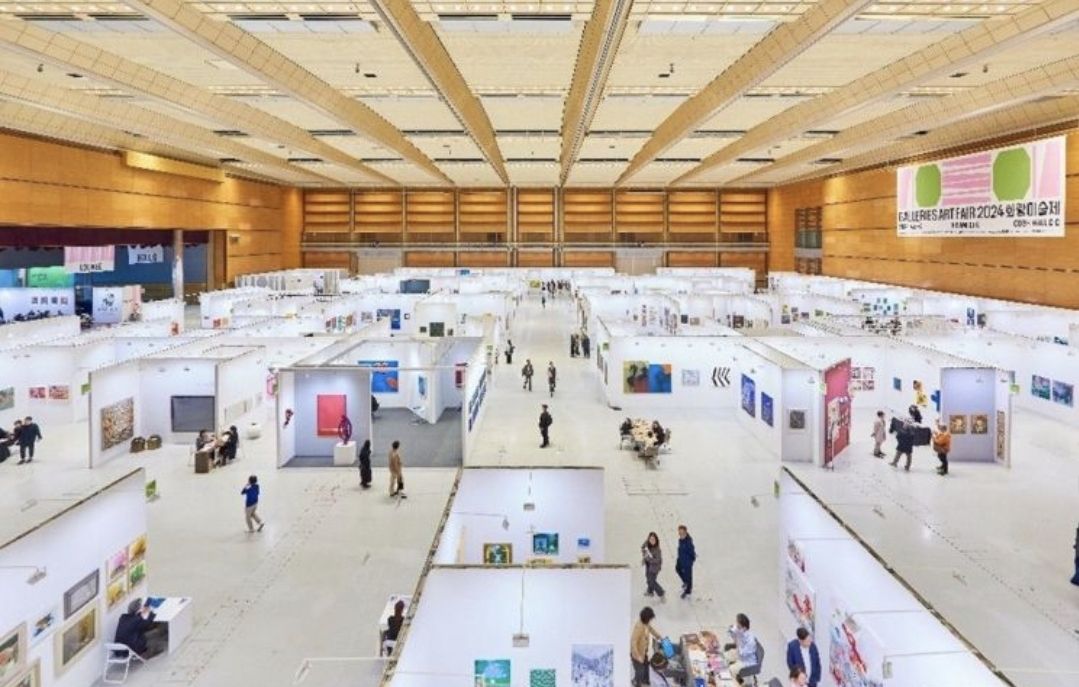 지난해와 달리 A,B 홀로 커진 2025 화랑미술제는 6m, 7m 크기의 동일한 부스에 각 갤러리에서 6명 작가를 내세워 회화 조각 설치 등 총 4000여 점을 전시 판매합니다.