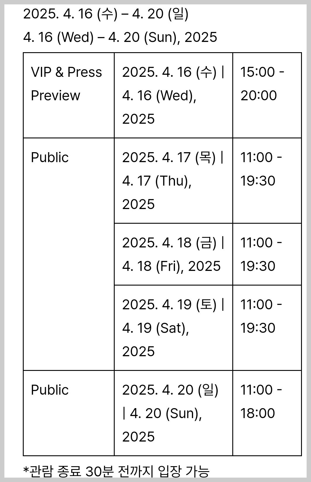 | 2025 BAMA 바마 예매 부산국제화랑아트페어 벡스코전시 (0) | 2025.03.27 |