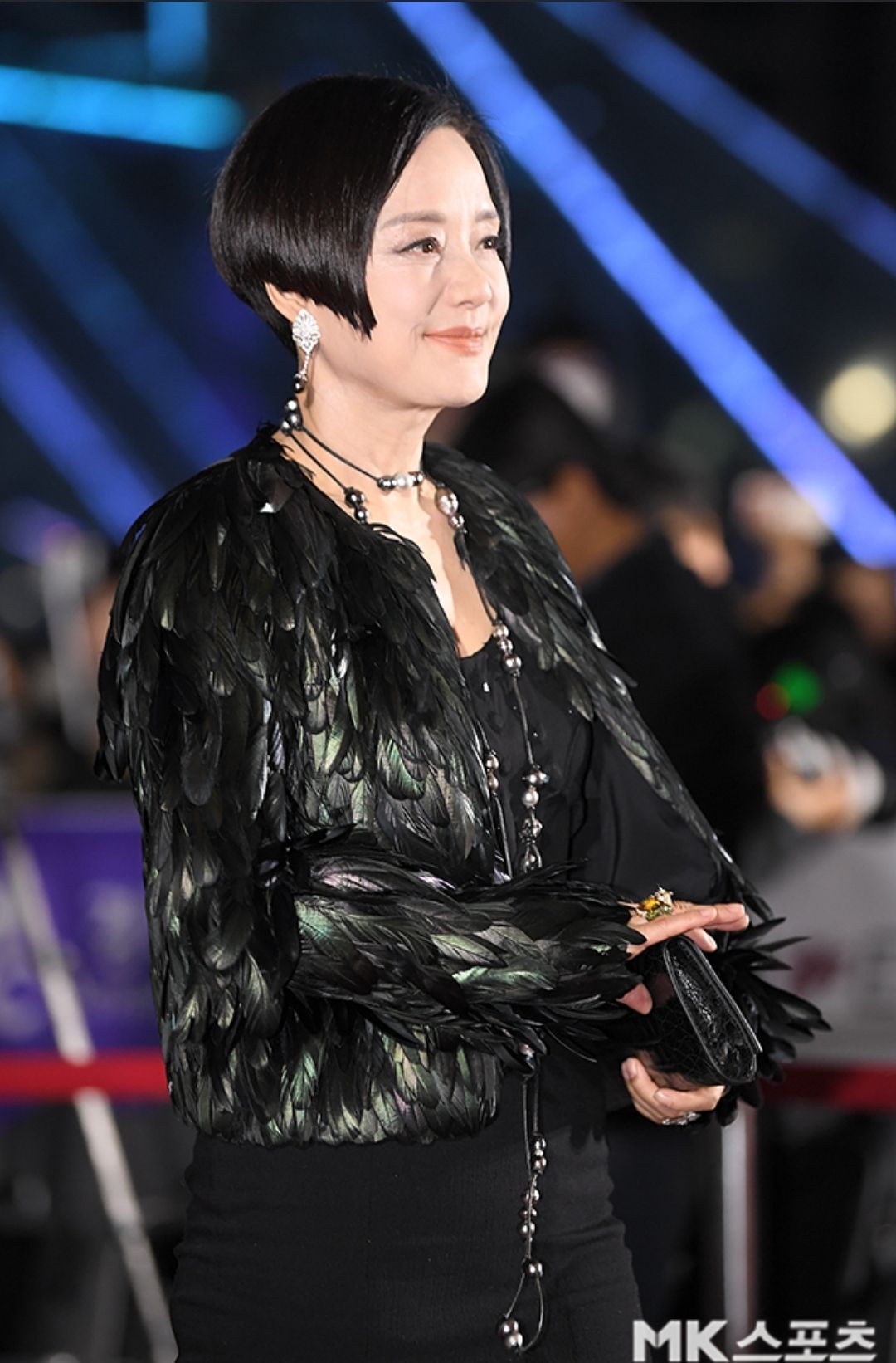 짧은 헤어컷에 변하지 않는 늘 우아한 모습입니다.