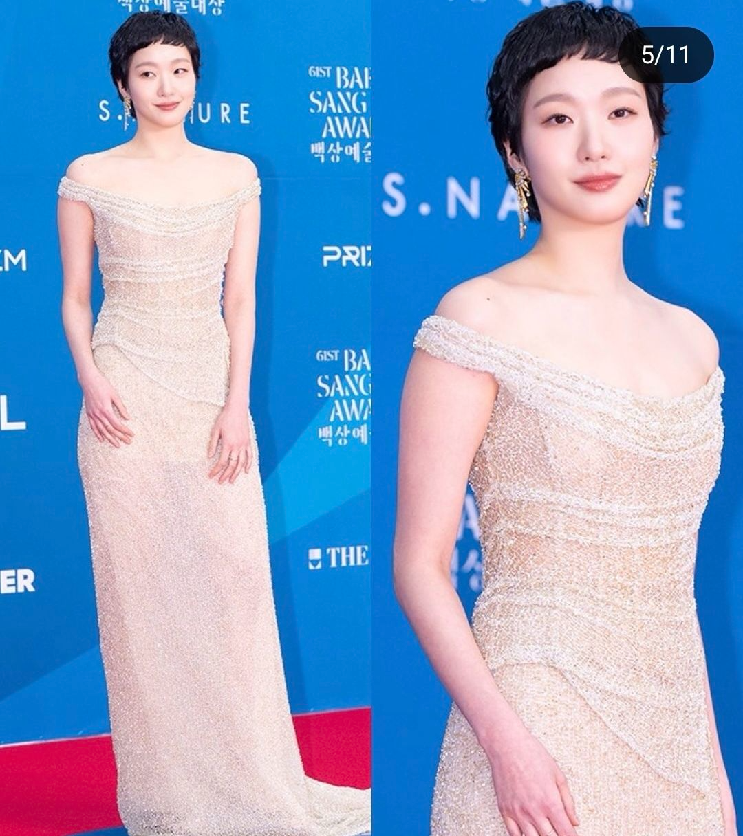 골드빛 드레스의 김고은 배우는 고혹적인 분위기를 물씬 풍기네요.