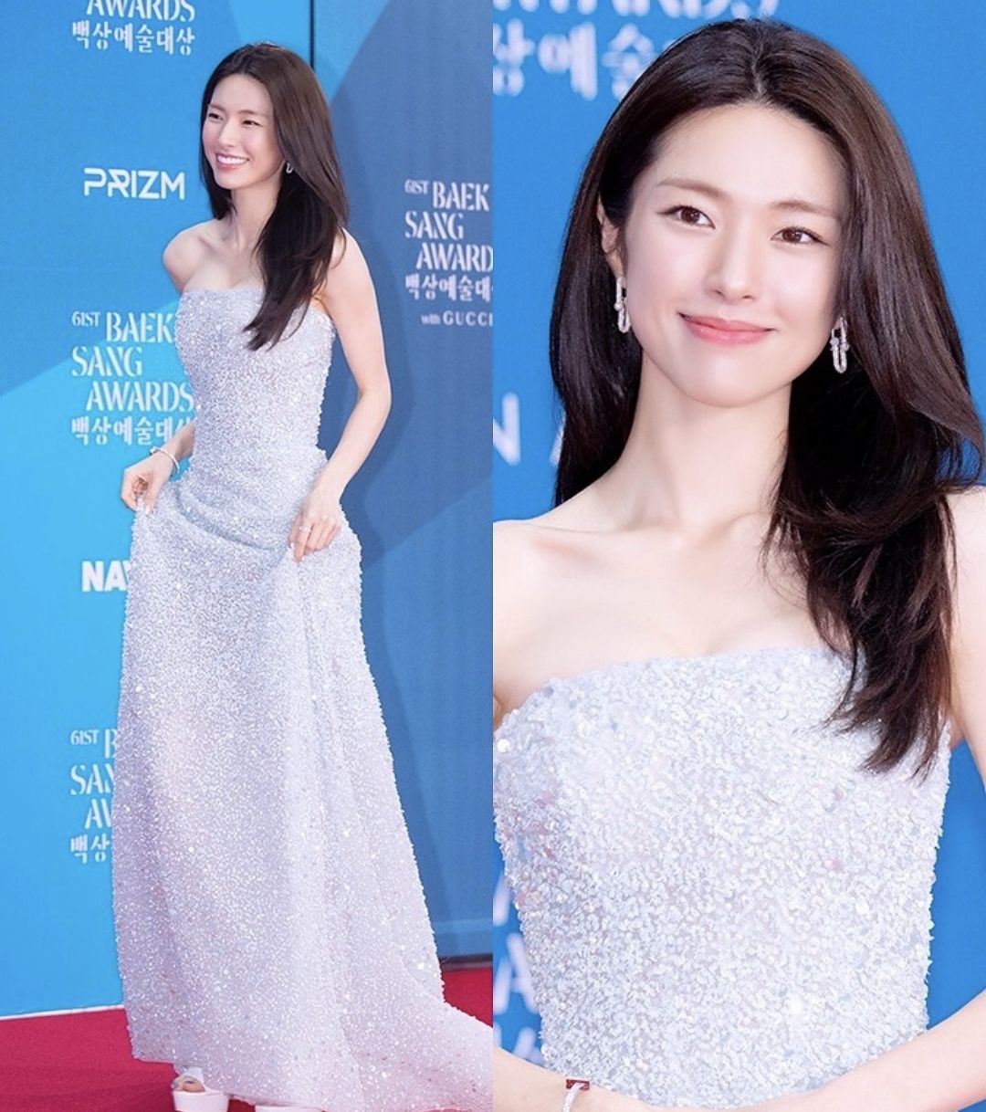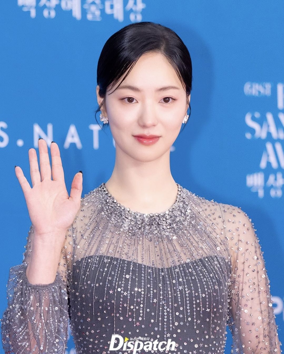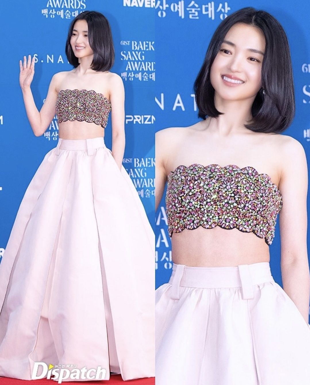 전여빈 배우는 화려한 비즈장식의 제니팩햄 드레스를 착용했습니다.