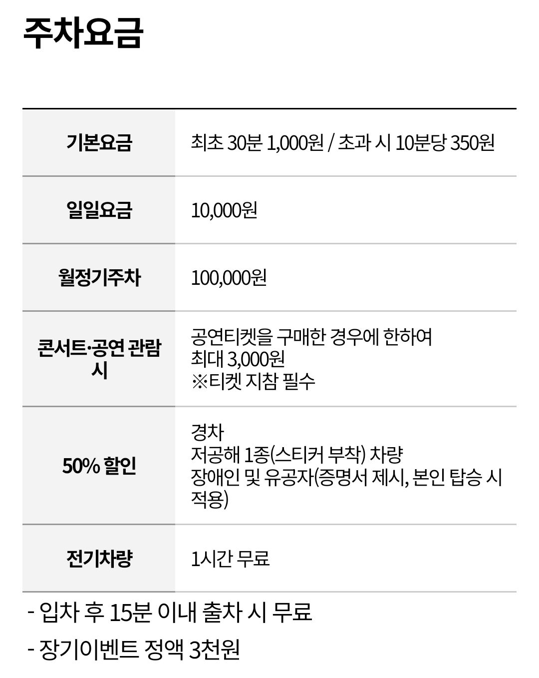 일일요금은 10,000원이며 전기차량은 1시간 무료라고 합니다.