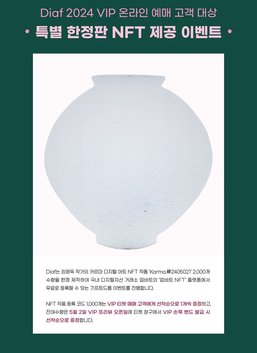 대구화랑협회는 최영욱 작가의 카르마 디지털 아트 NFT 작품을 2000개 한정 제작해 '업비트NFT' 플랫폼에서 무료로 등록할 수 있는 기프트 드롭 이벤트를 진행합니다.